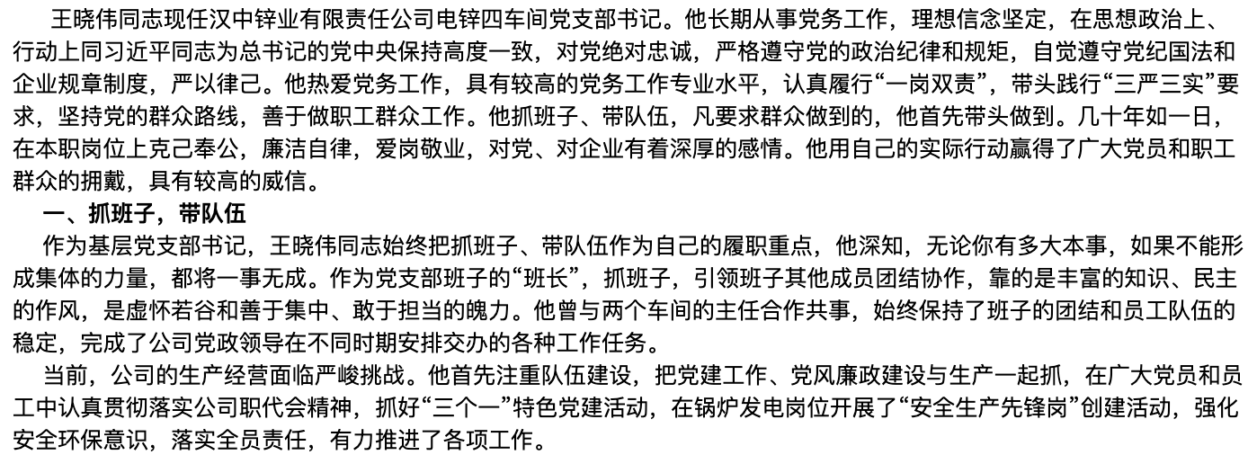 集團公司優秀黨務工作者王曉偉先進事跡材料