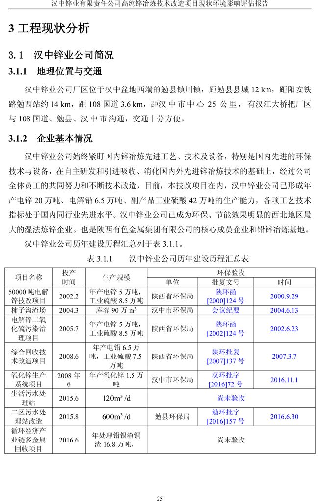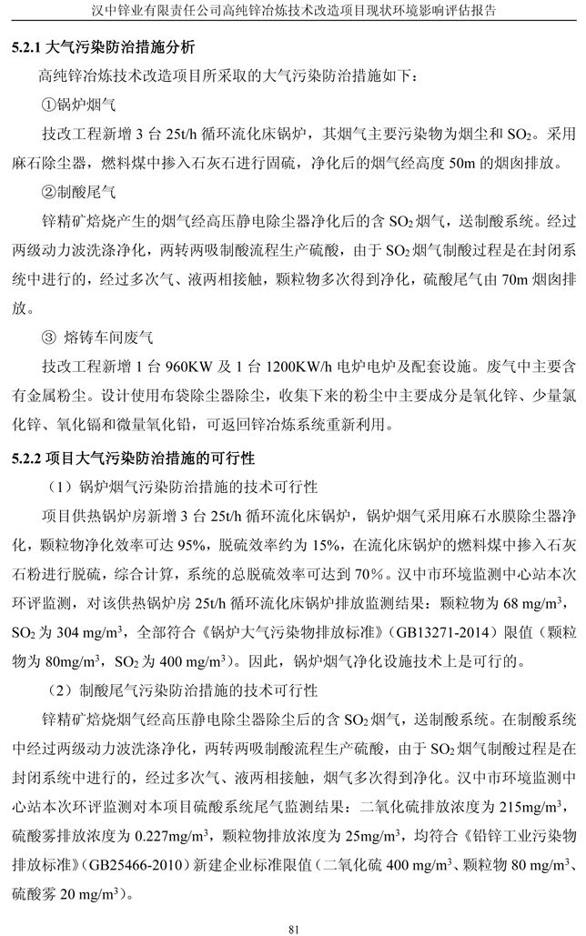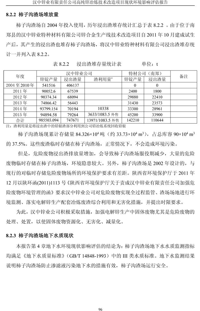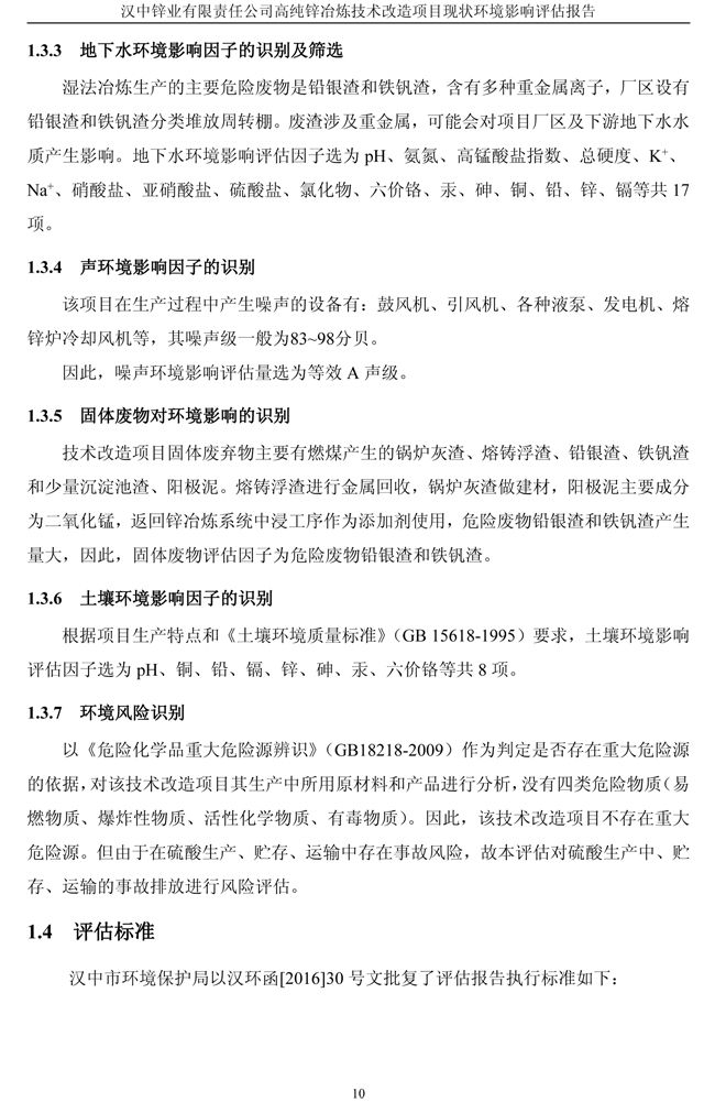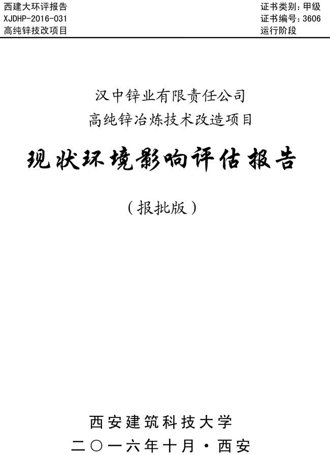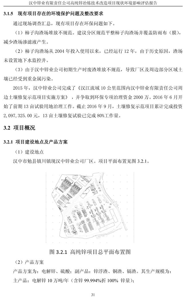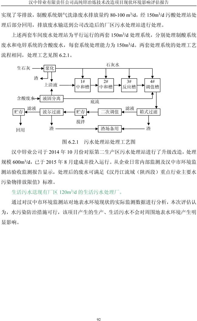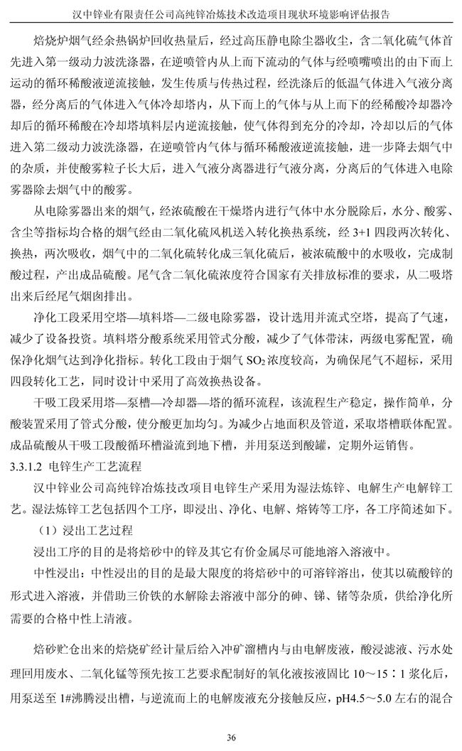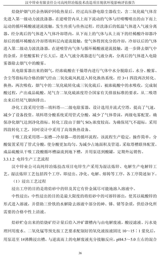 漢中鋅業公司高純鋅項目現狀環境影響評估報告