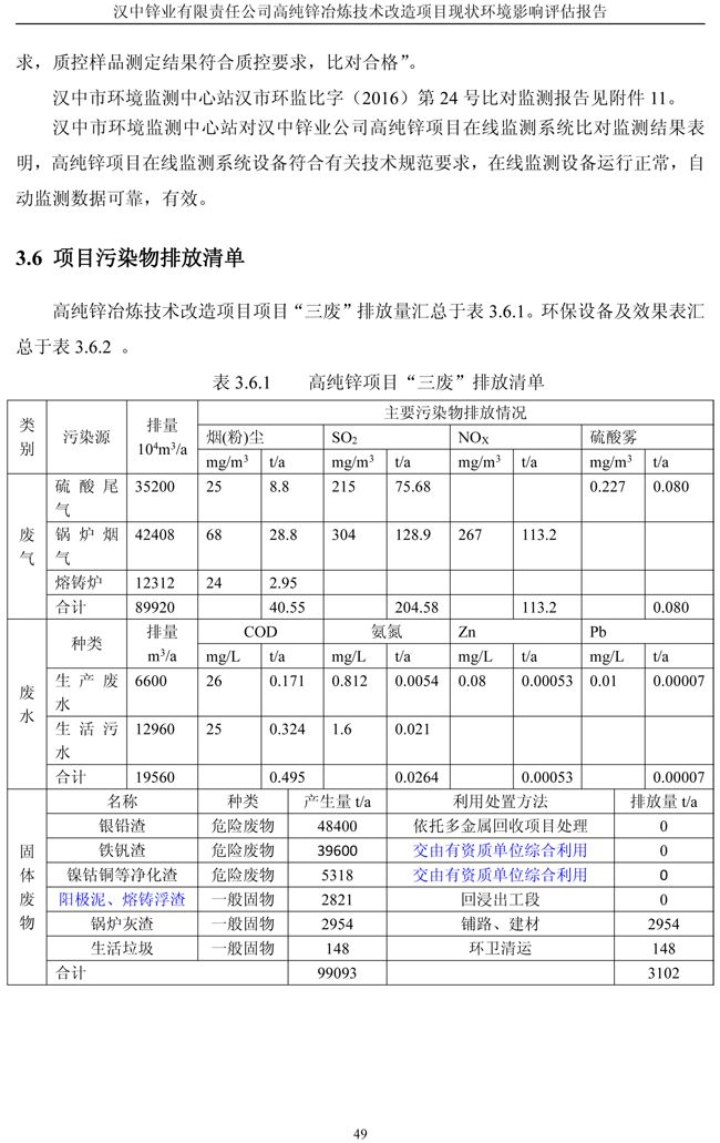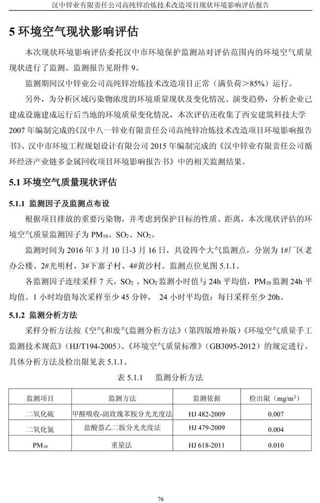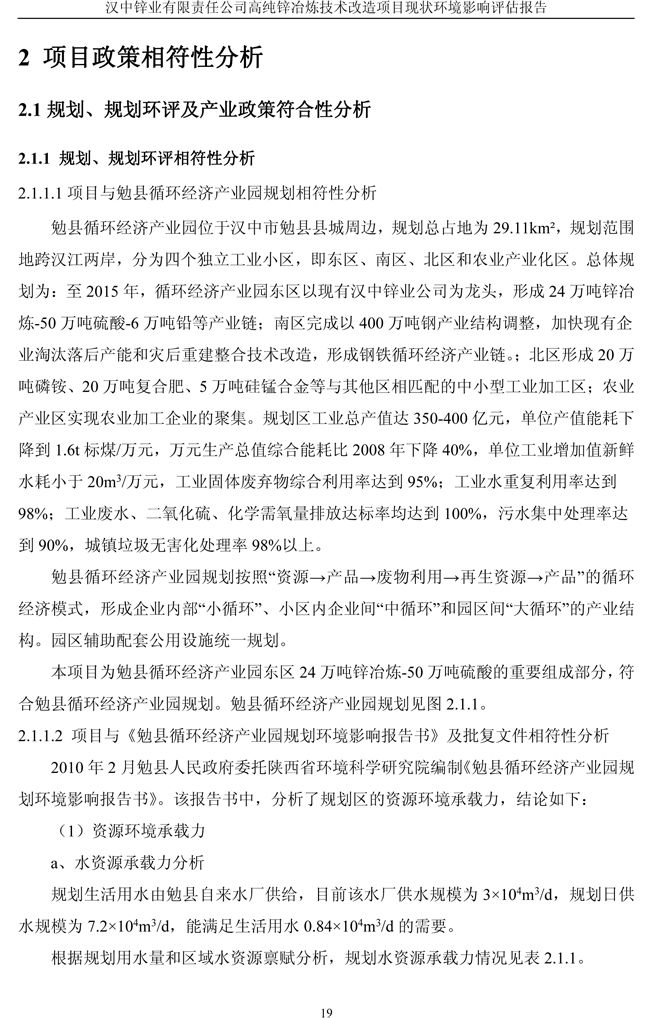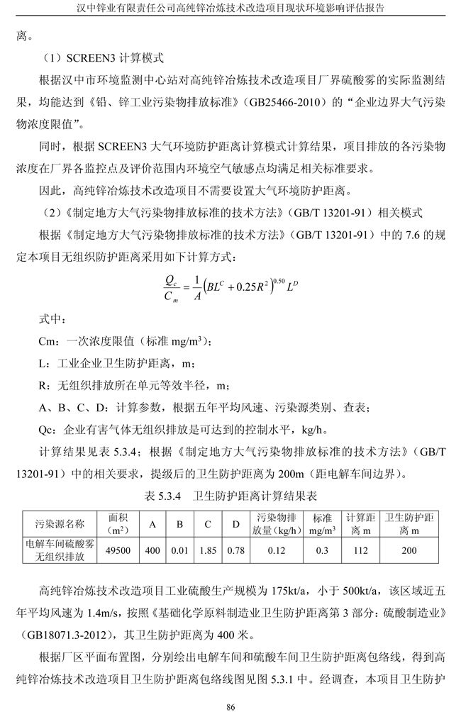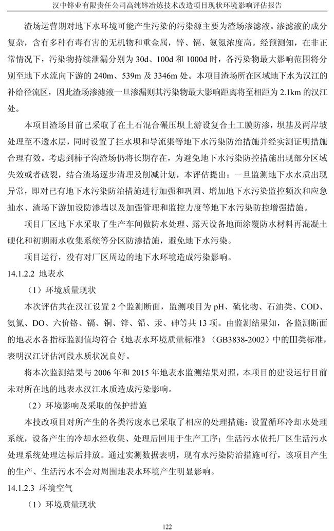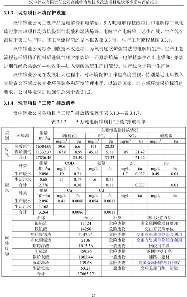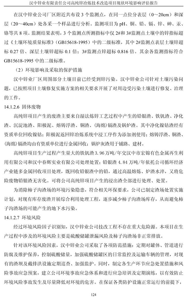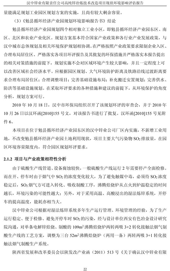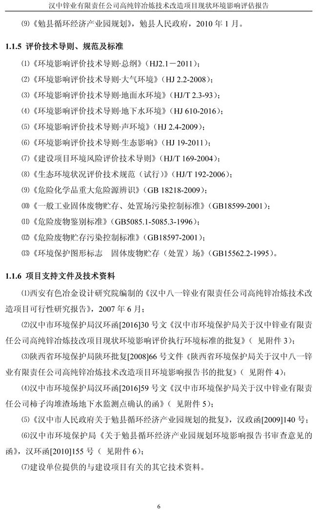 漢中鋅業公司高純鋅項目現狀環境影響評估報告