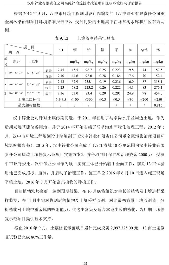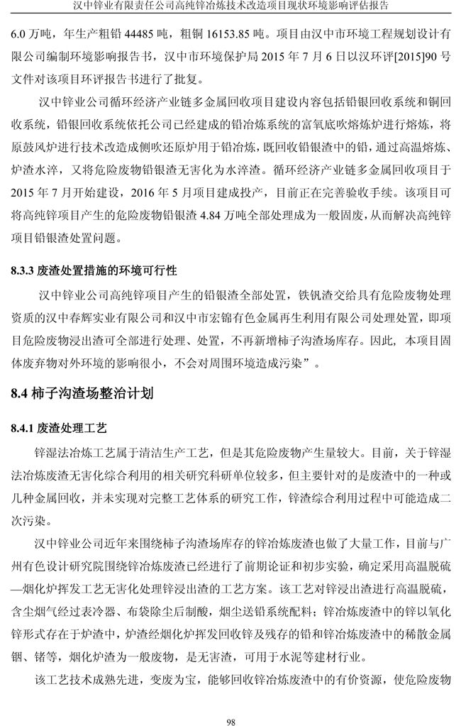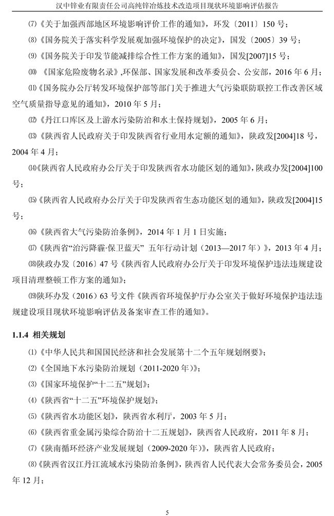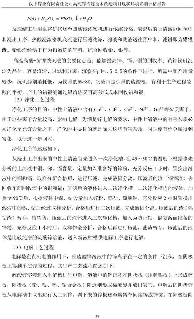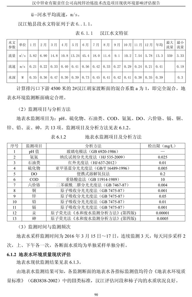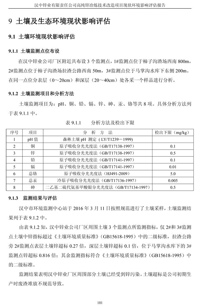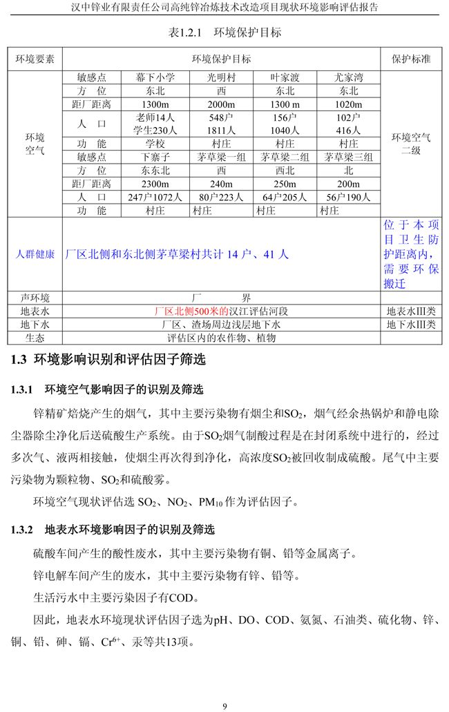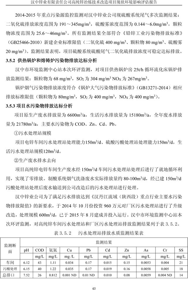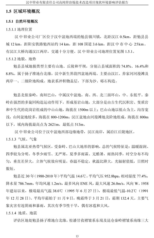 漢中鋅業公司高純鋅項目現狀環境影響評估報告