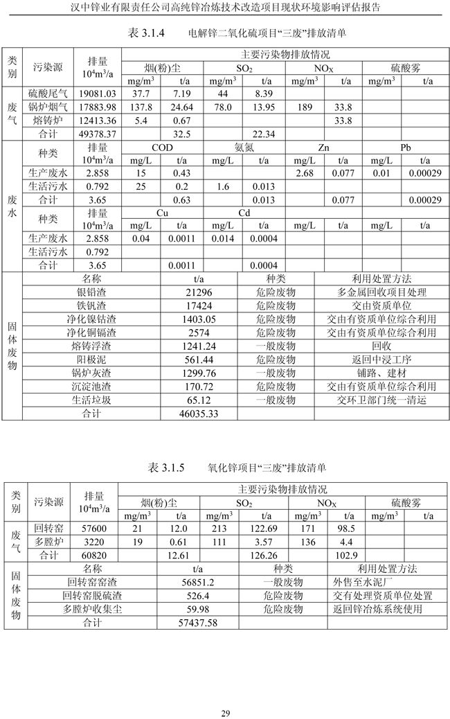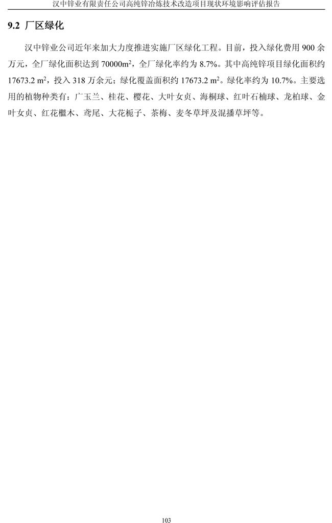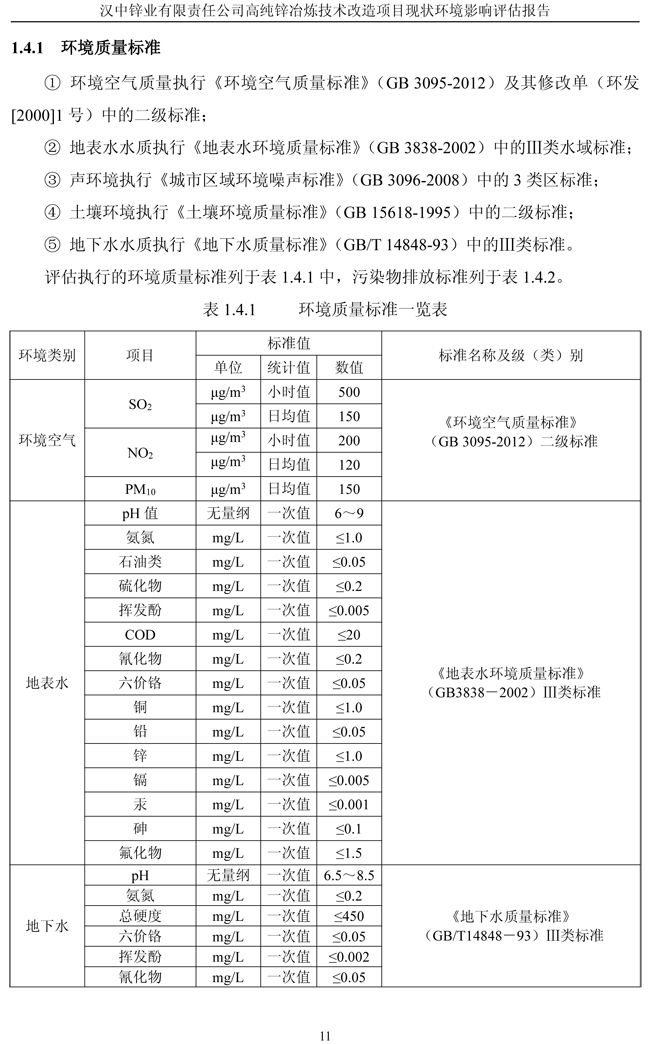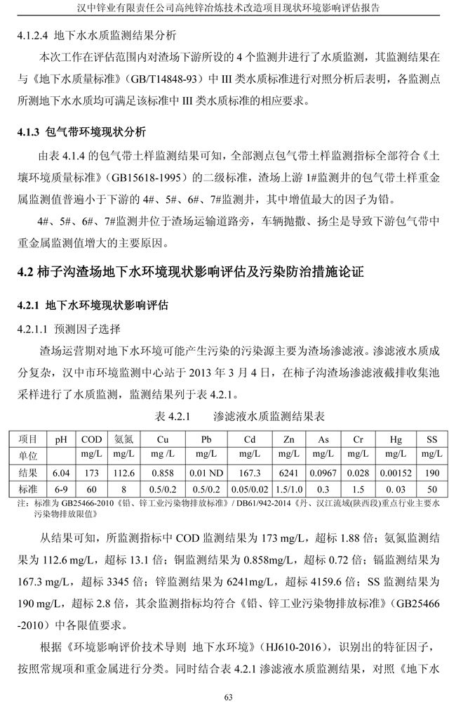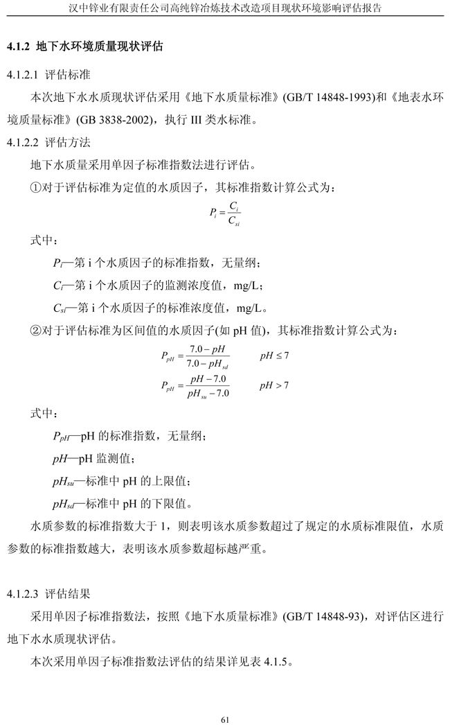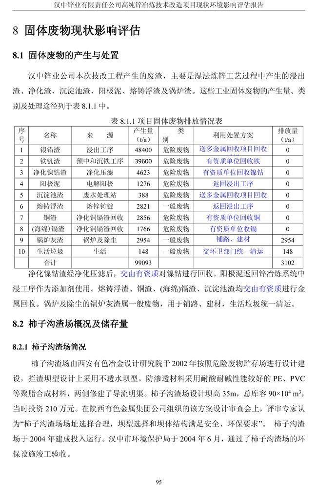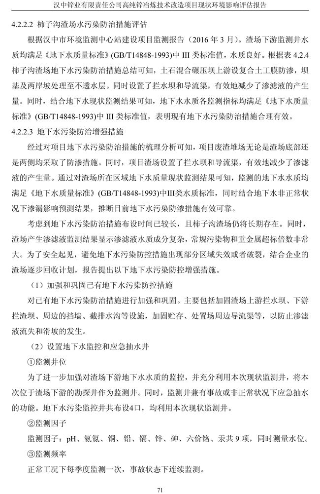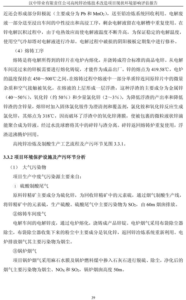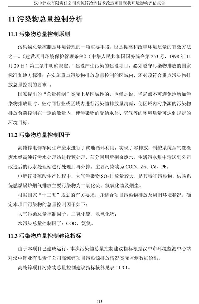 漢中鋅業公司高純鋅項目現狀環境影響評估報告
