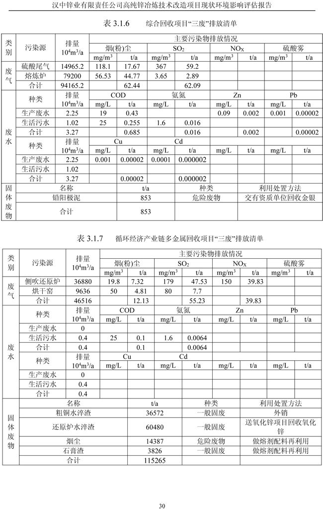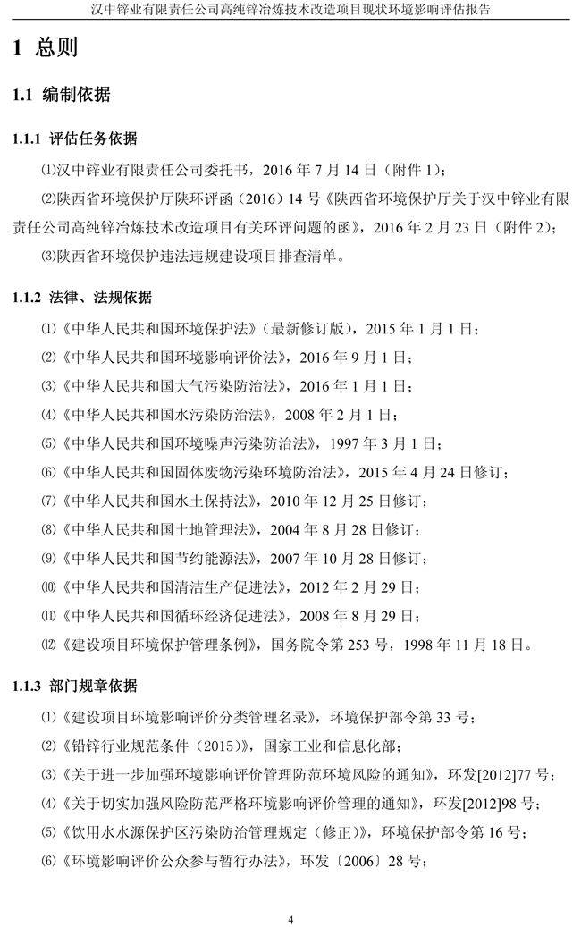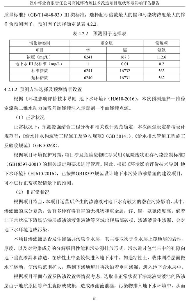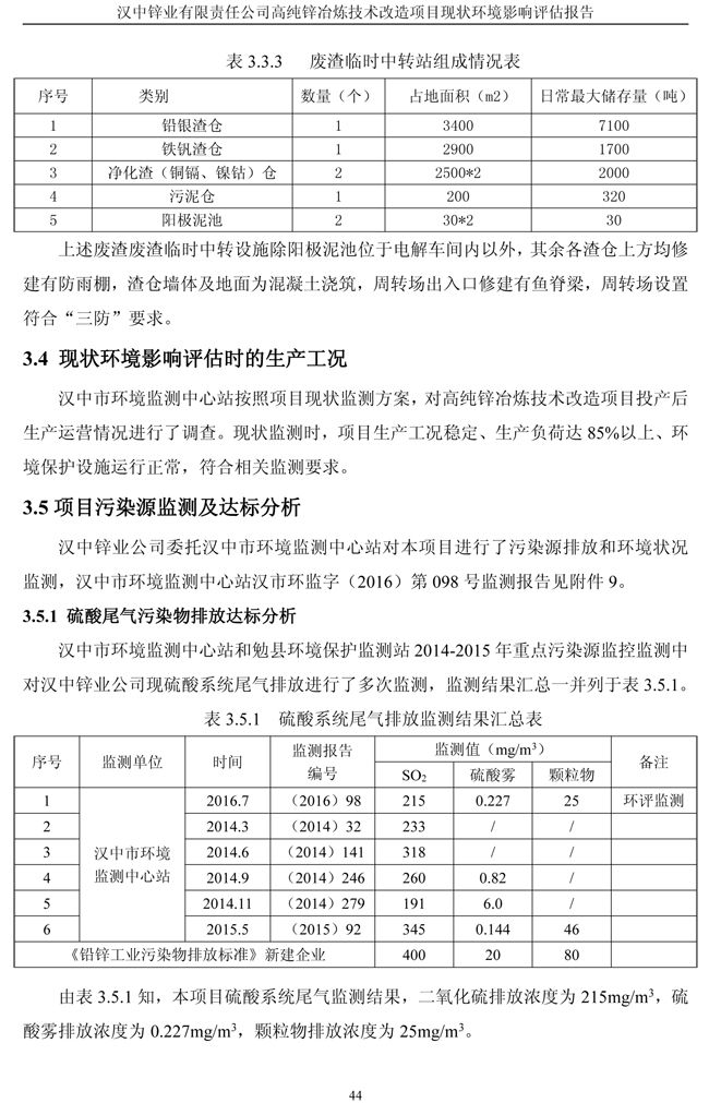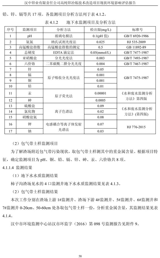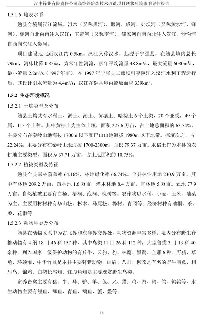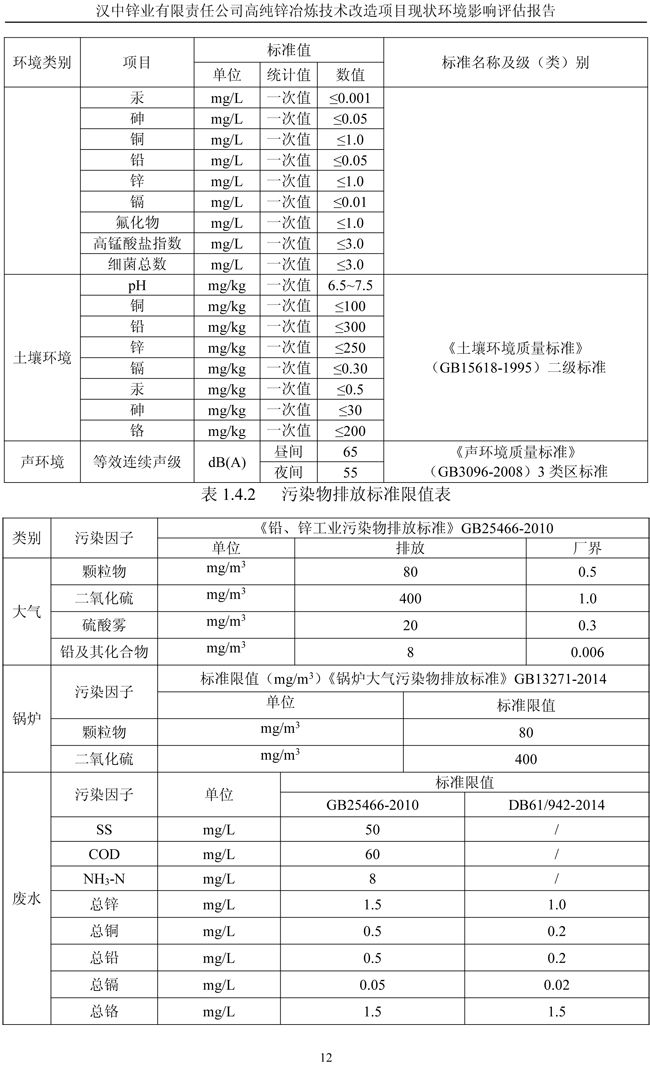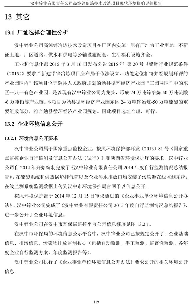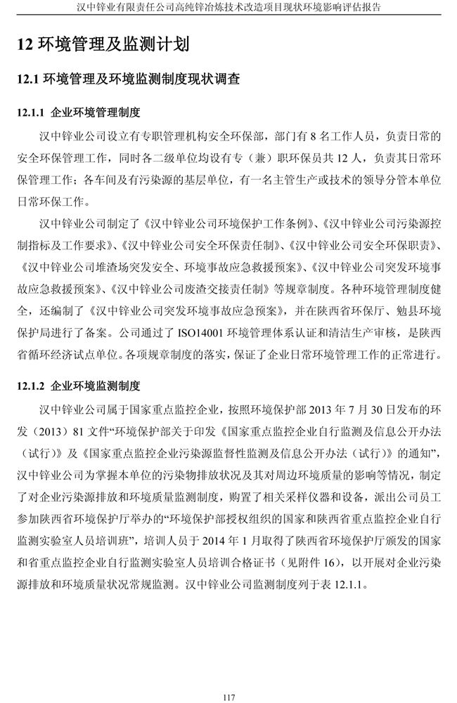 漢中鋅業公司高純鋅項目現狀環境影響評估報告