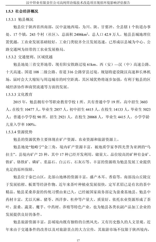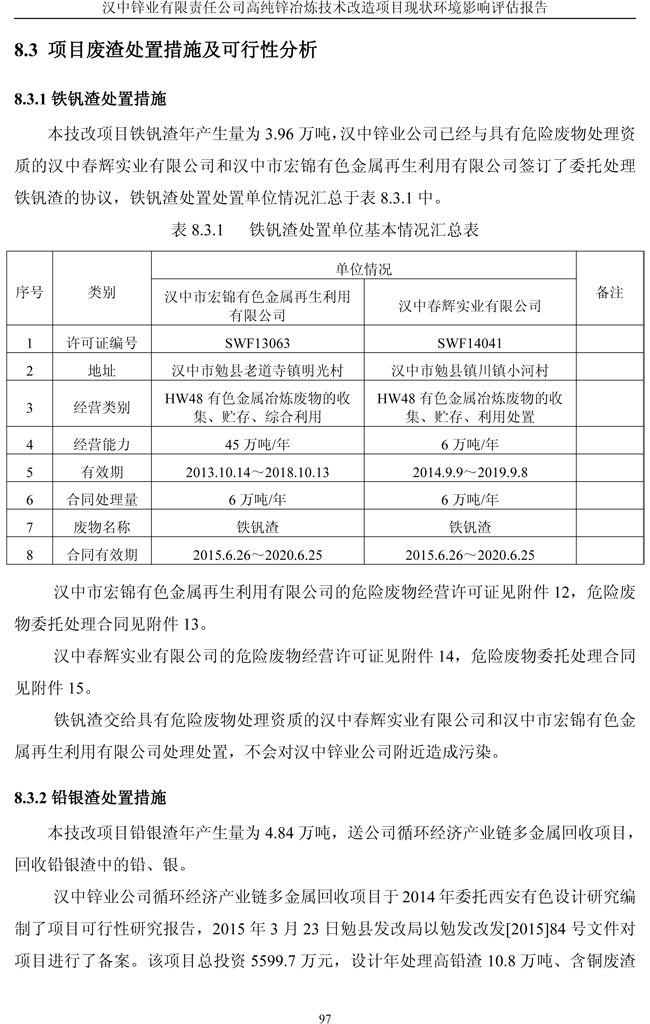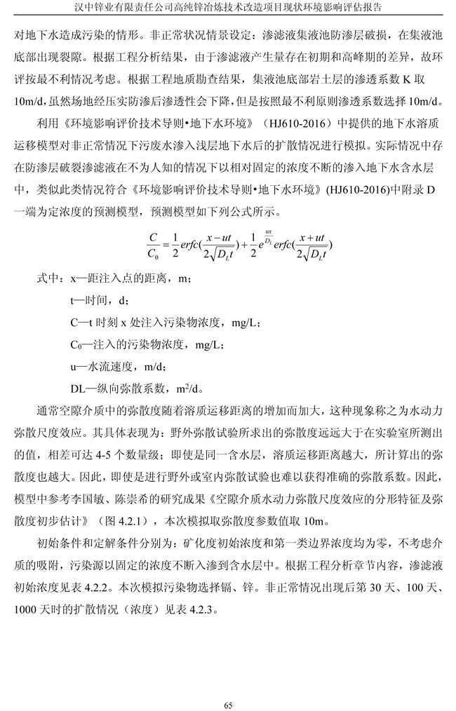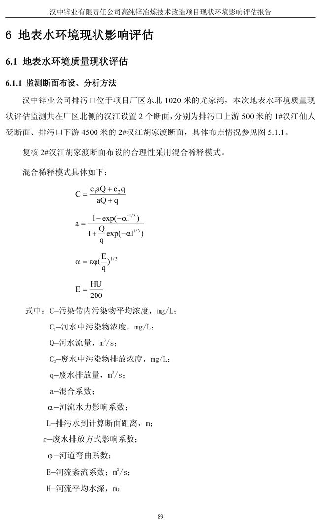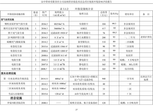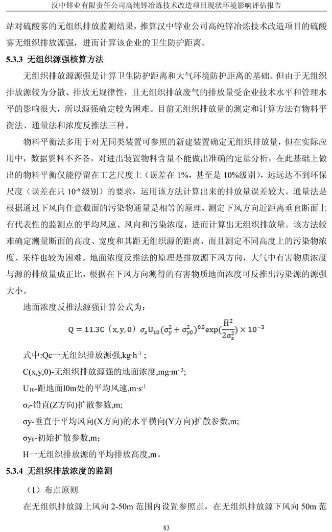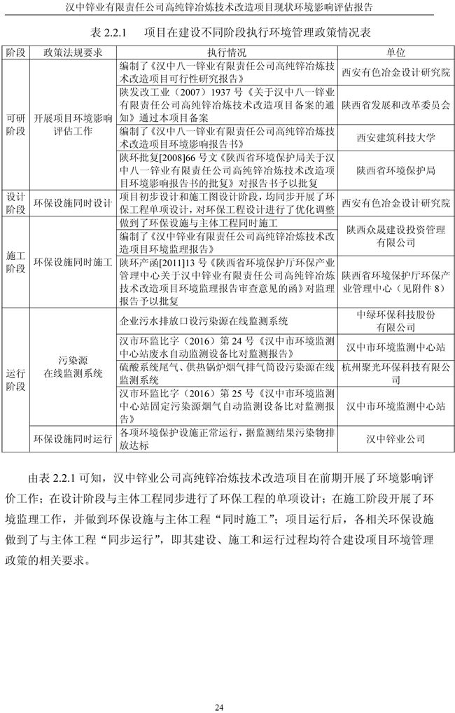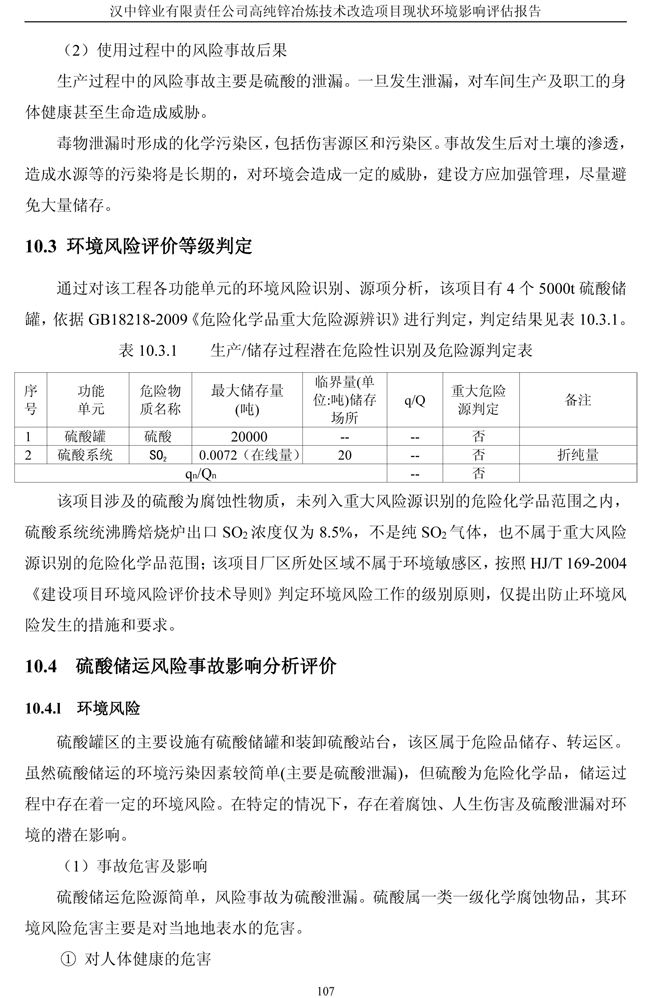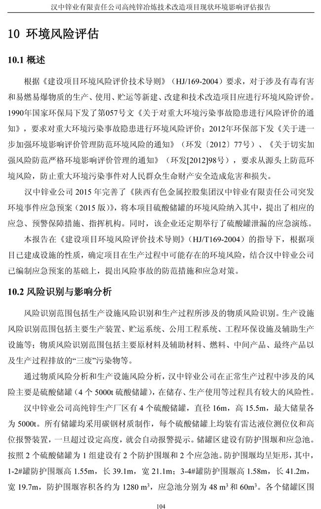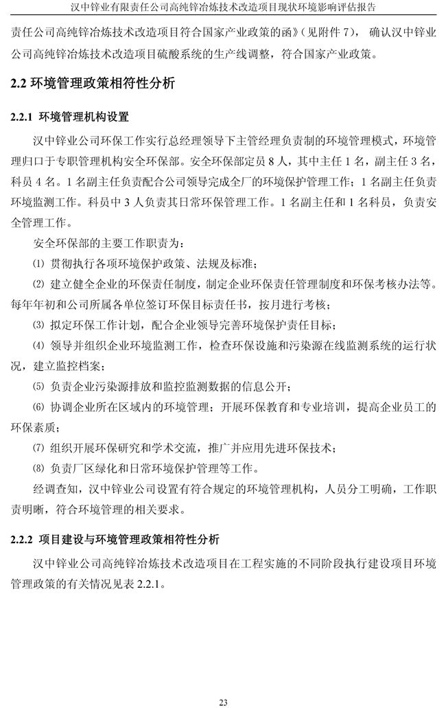 漢中鋅業公司高純鋅項目現狀環境影響評估報告