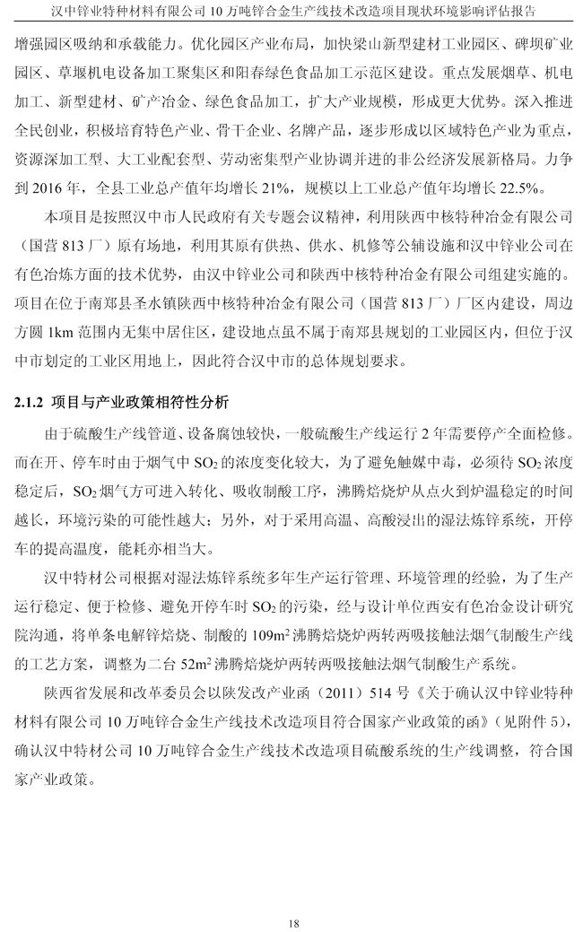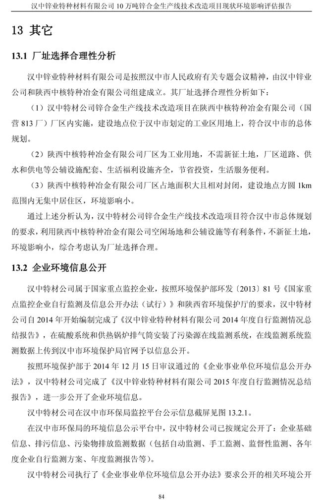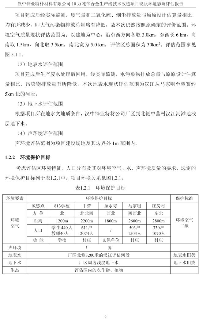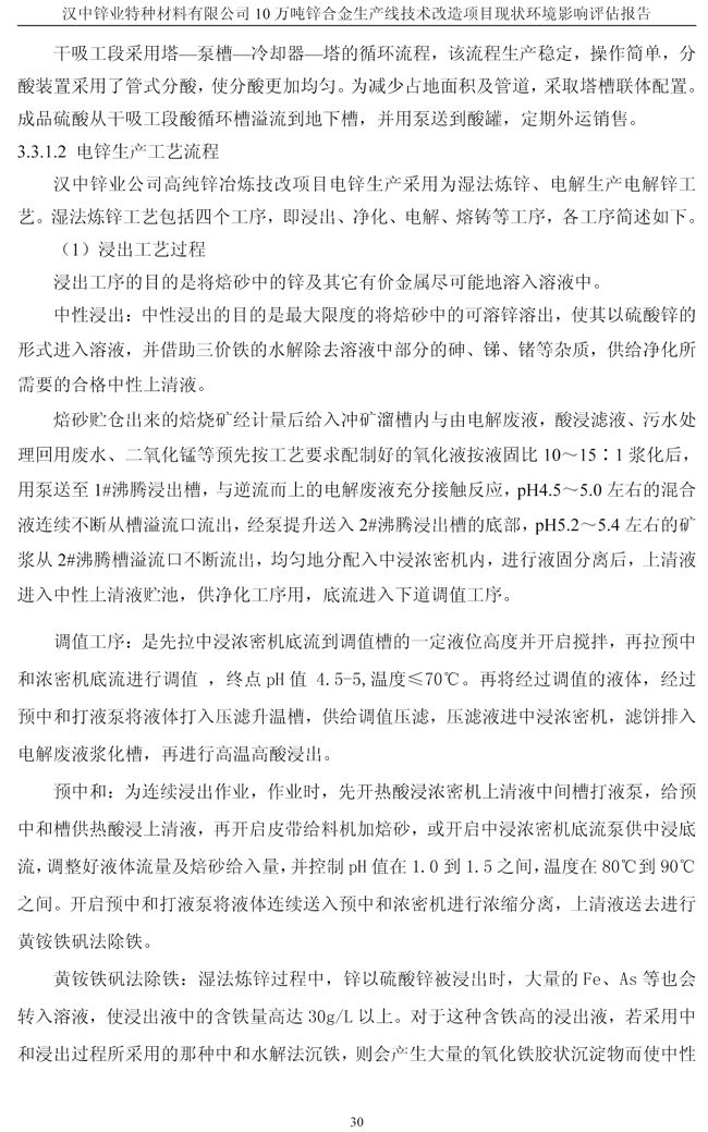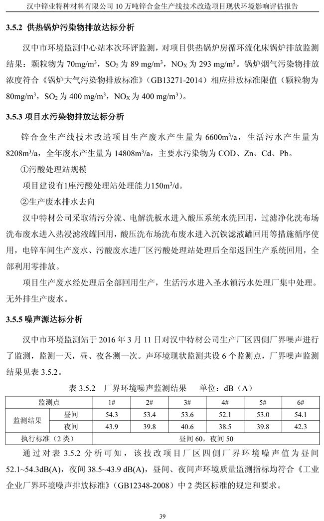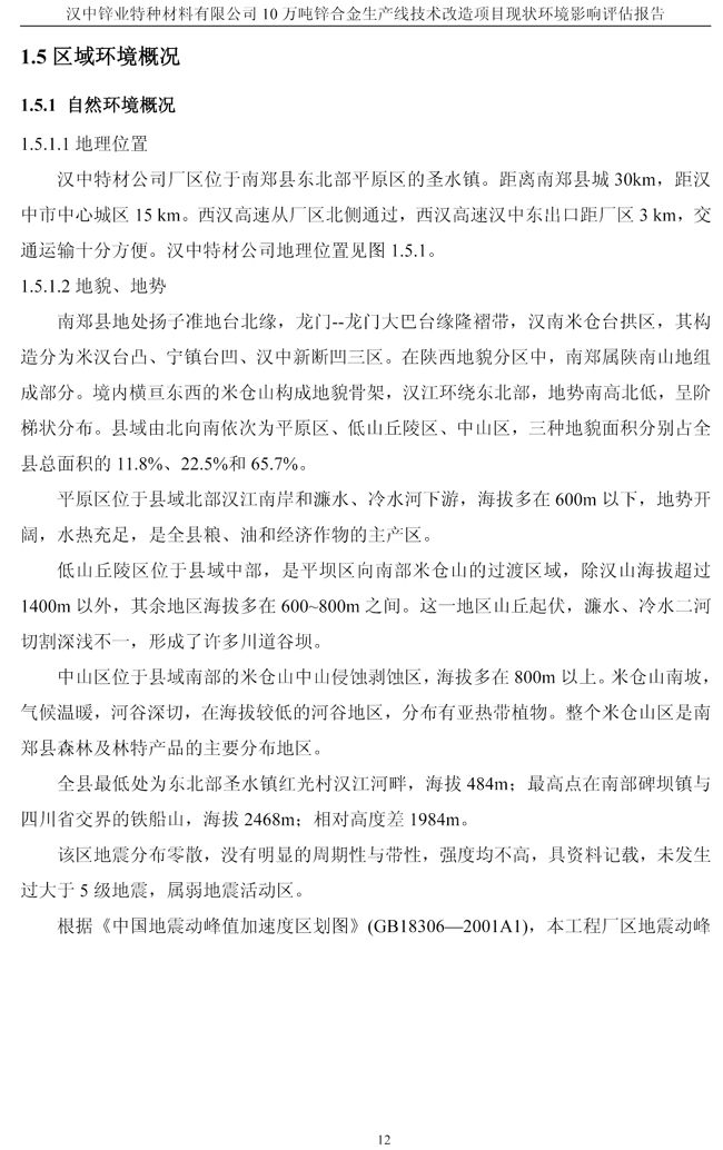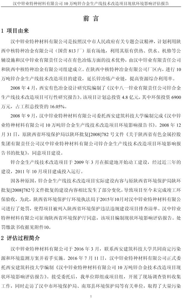 漢中鋅業公司鋅合金項目現狀環境影響評估報告