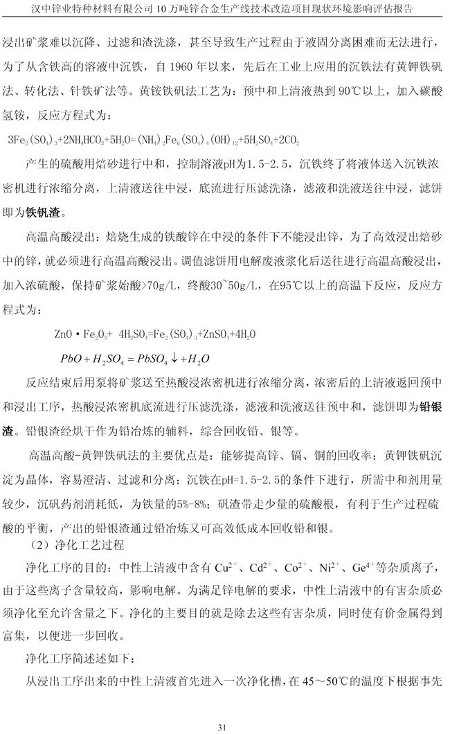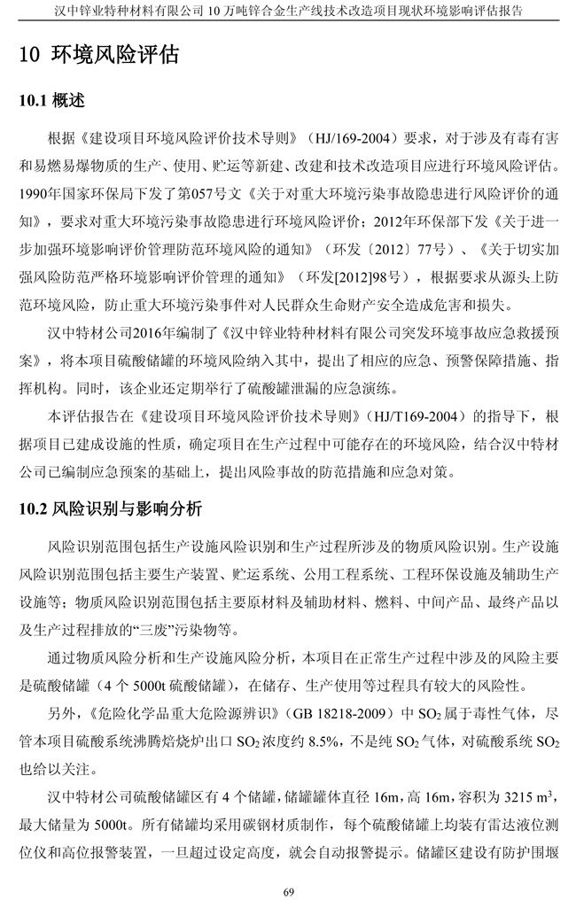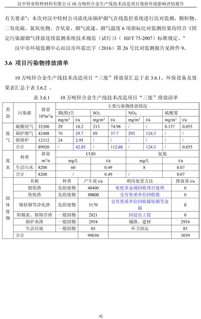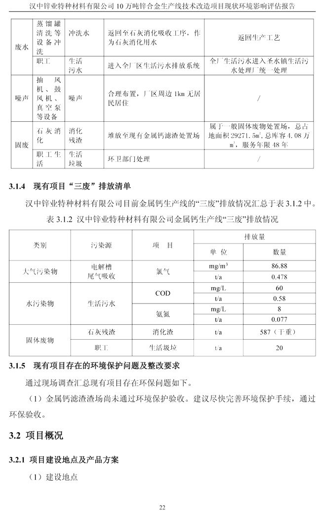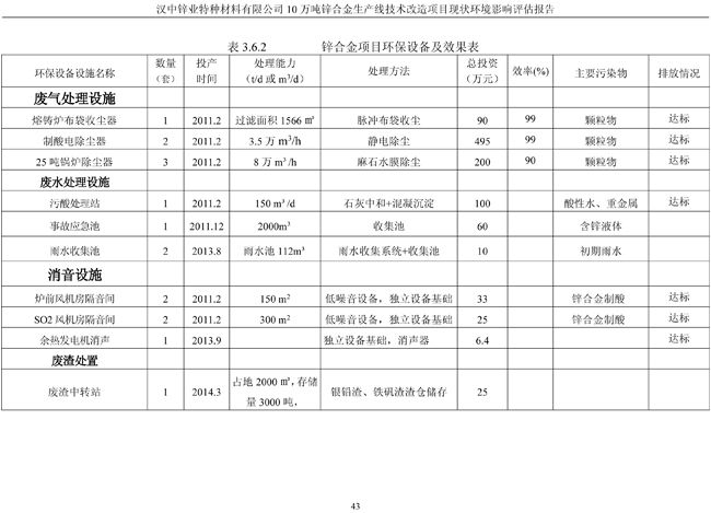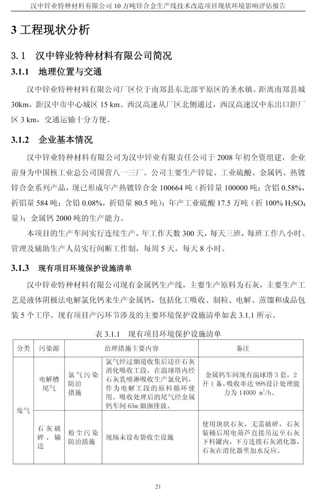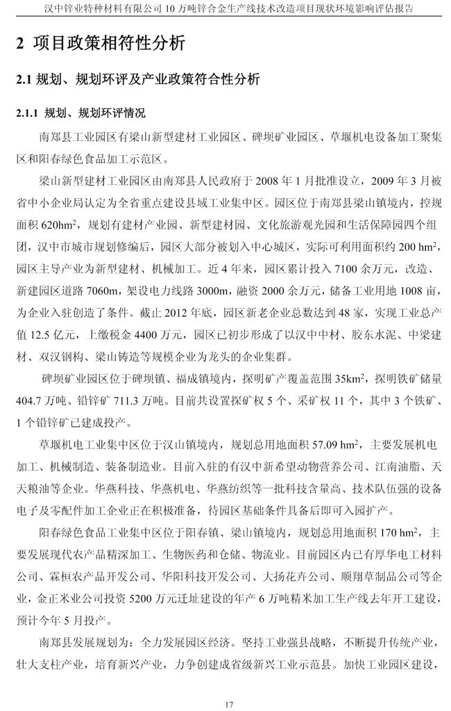 漢中鋅業公司鋅合金項目現狀環境影響評估報告