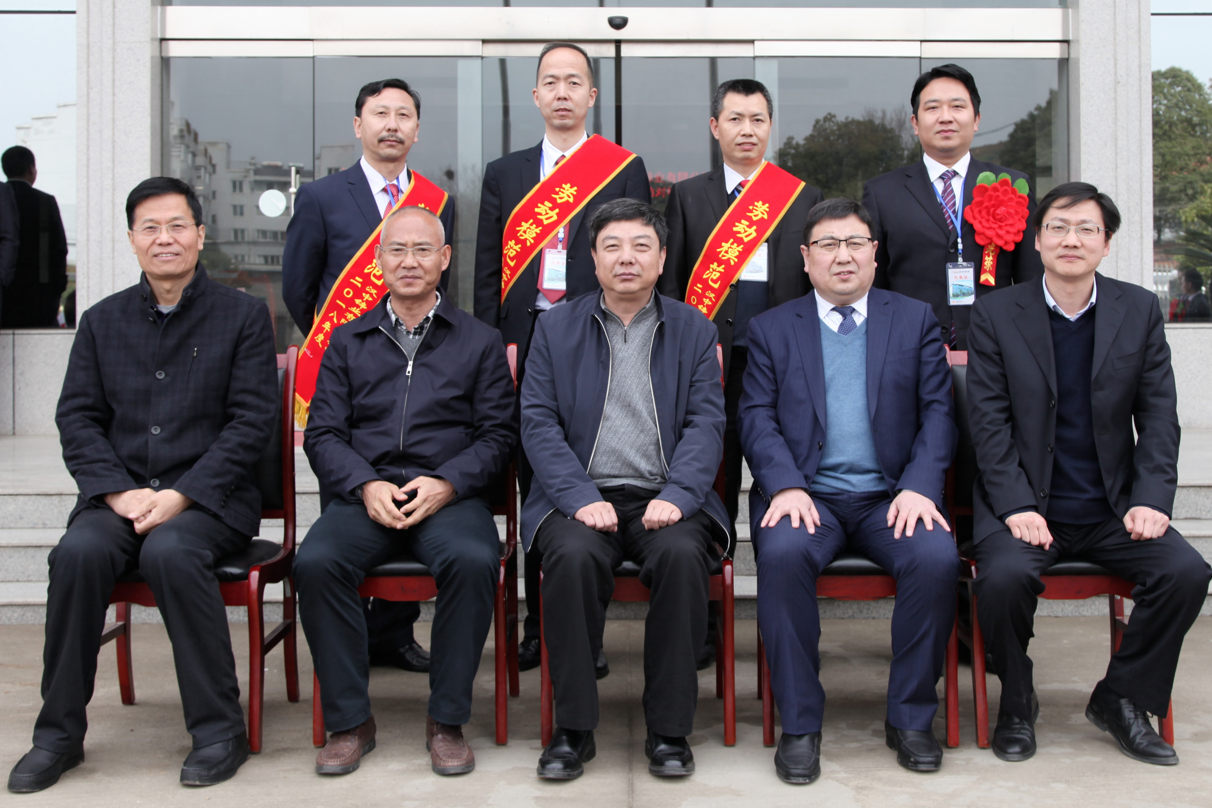 公司領導與2018年度“勞動模范”和“先進集體代表”合影