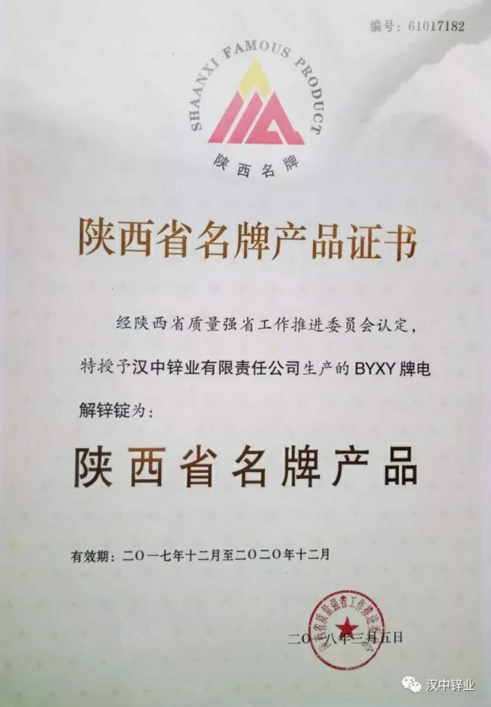 公司生產(chǎn)的BYXY牌電解鋅錠順利通過(guò)陜西名牌產(chǎn)品復(fù)評(píng)。2018年5月10日在省政府綜合樓4樓會(huì)議室,公司代表和100多家省內(nèi)名牌產(chǎn)品企業(yè)參加了陜西省質(zhì)量技術(shù)監(jiān)督局組織的省名牌產(chǎn)品授牌儀式,現(xiàn)場(chǎng)領(lǐng)取了陜西省質(zhì)量強(qiáng)省工作推進(jìn)委員會(huì)頒發(fā)的證書(shū)和獎(jiǎng)牌。