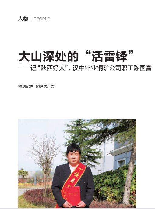 陳國富救人雖說是偶然,卻也是必然。陳國富在廠里工作十多年了,始終兢兢業業,勤勤懇懇,踏踏實實,本本分分。這么愛崗敬業、與人為善的人,關鍵時候能夠冒著生命危險去勇救落水兒童,這就是偶然中的必然了……我們自己身邊的活雷鋒,卻沒能及時發現”說起陳國富救人的事,漢中鋅業銅礦公司黨總支書記馬文軍自豪又遺憾地對我們說。